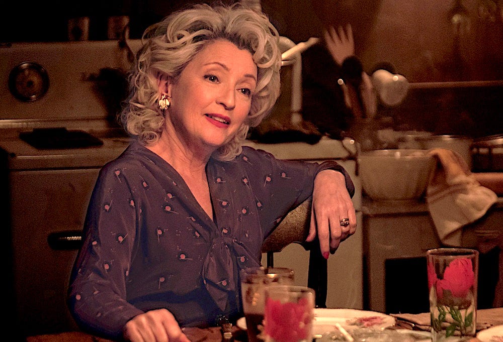Just as you’re getting off on the economy of it all, along comes the Weboy matriarch, Blanche, played with bottle-blonde hair and all stops out by the British actress Lesley Manville. Manville was Oscar nominated for playing the icy sister in “Phantom Thread,” and she has established a persona as a class act that she happily trashes here. She’s smart enough to look at all that underacting that Costner and Lane are doing and blow the doors off the movie by playing her character as the Ma Barker of North Dakota. You know you’re in for a treat when Blanche invites George and Margaret in for pork chops and Manville somehow makes those two syllables become five. Although I don’t know why she’s talking about pork chops when what she’s doing is serving ham straight off the griddle.