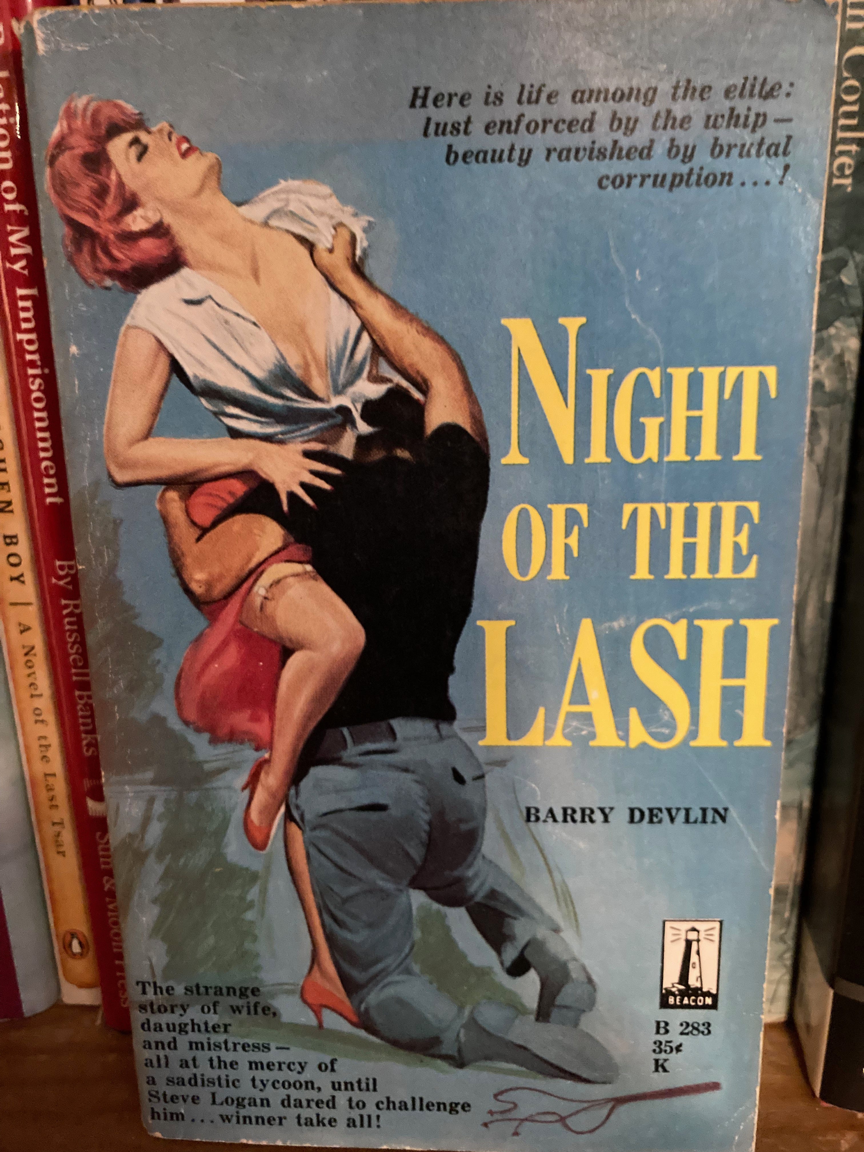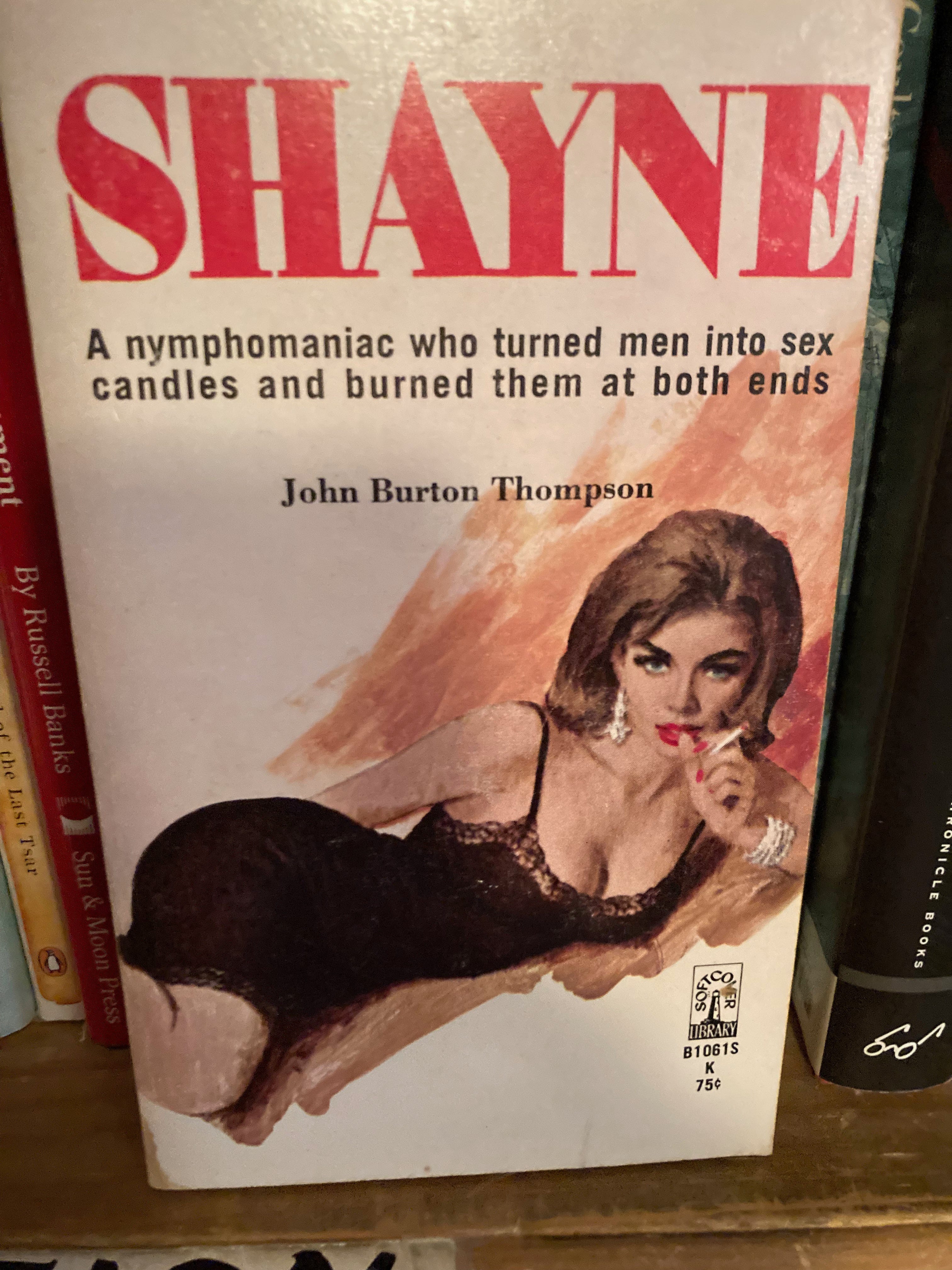 The cover art is by, in order, Robert McGinnis â perhaps the most celebrated of pulp-fiction illustrators â Mel Crair, Harry Barton, and unknown. Follow the links for more gorgeous depravity, and if you ever figure out what a human sex candle is, do let me know.