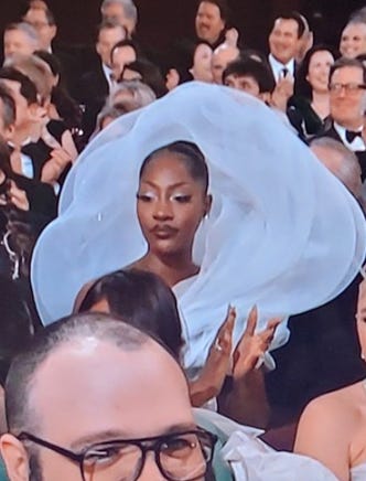 Getty Images Was I the only person experiencing severe cognitive dissonance as some mind-bendingly awful dresses received high praise from the commentators on TV? Florence Pugh looked like an explosion in a drapery factory, Jennifer Connolly appeared to have a small runway stapled to her chest, and there were enough oversized bows to outfit a Macy’s parade float. And pity the people sitting behind singer and Oscar nominee Tems and her giant cumulus cloud of a headpiece.