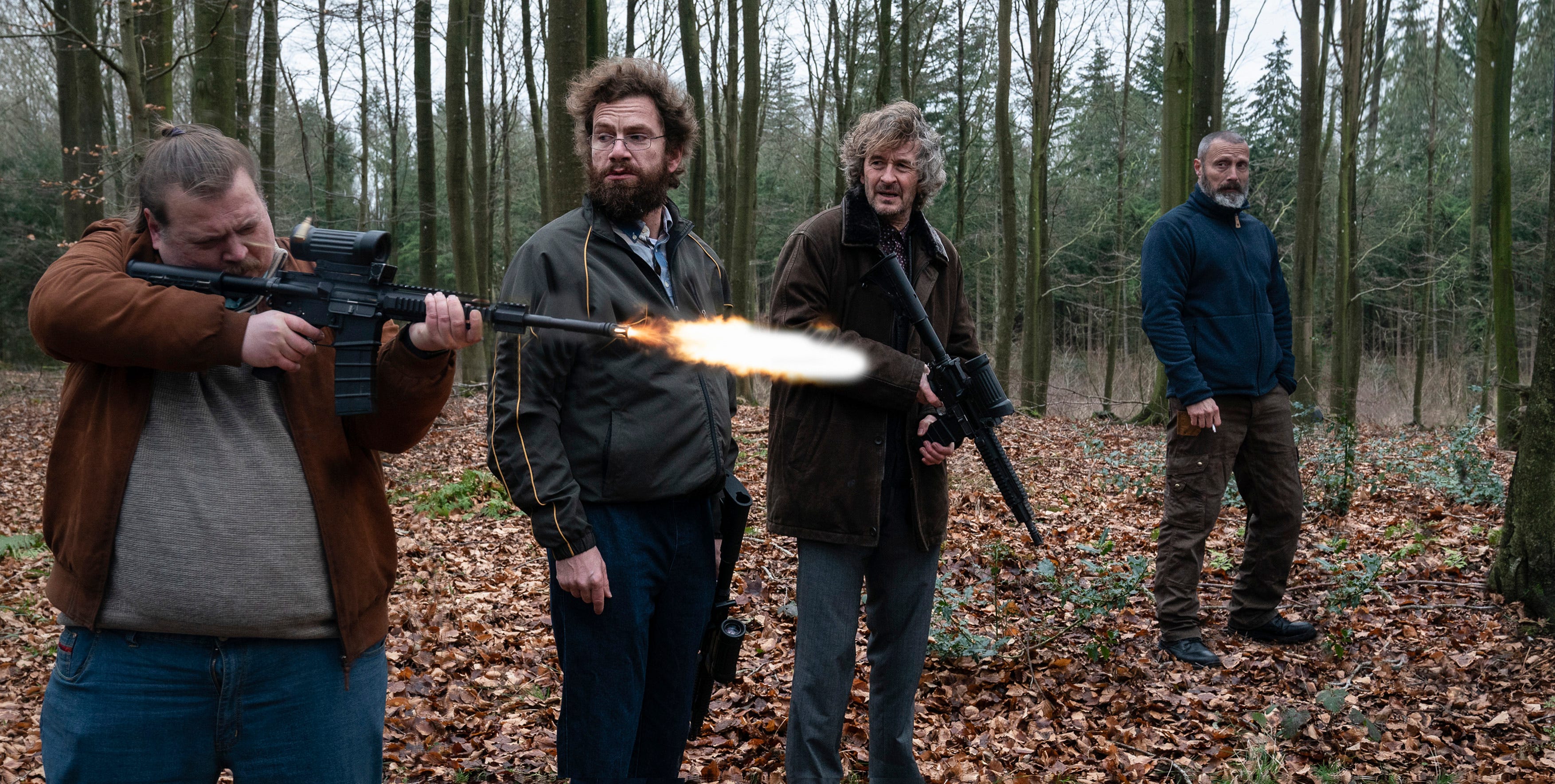 The title of “Riders of Justice” refers to the criminal gang, but it also describes (with all attendant irony) the group of misfits who come together in a vigilante conspiracy: The simmering powder-keg Markus, the statistics wonk Otto, and Otto’s two hacker colleagues, Lennart (Lars Brygmann) and Emmenthaler (Nicholas Bro), the former thin and chirpy, the latter corpulent and aggrieved. Later they’ll be joined by a boyish Ukrainian sex slave (Gustav Lindh), Markus’s daughter, and the boyfriend (Albert Rudbeck Lindhardt) in a makeshift family as warm as it is deranged.