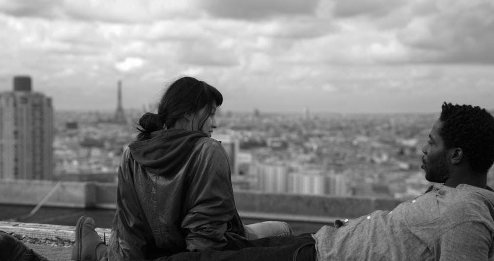 In fact, there’s a bit of a “Breathless” vibe to “Paris, 13th District.” You can feel it in the offhanded cinematography, the way the camerawork simultaneously de-glamorizes/re-glamorizes the gray streets of Paris, and it’s there in the three main characters, who are impetuous, attractive, selfish, and soulful. They’re pains in the butt and they’re ecstatically alive. (The film also has similarities to “The Worst Person in the World,” in that it’s about youthful mistakes gradually shading into something starting to look like wisdom.) If there’s a breakout star, it’s Lucie Chang as Émilie, a young woman working a boring call-center job and living from hookup to hookup. Advertising for a roommate, she’s startled when an applicant named Camille (Makita Samba) turns out to be a man, a schoolteacher working for his doctorate. They sleep together and then she decides he’ll do as a roomie. (She quotes an old Chinese proverb — “Fuck first, see later” — that she most certainly has made up for the occasion.) The trouble comes when Émilie finds herself falling in love with a man who insists “We have fun, but we’re not a couple.”
