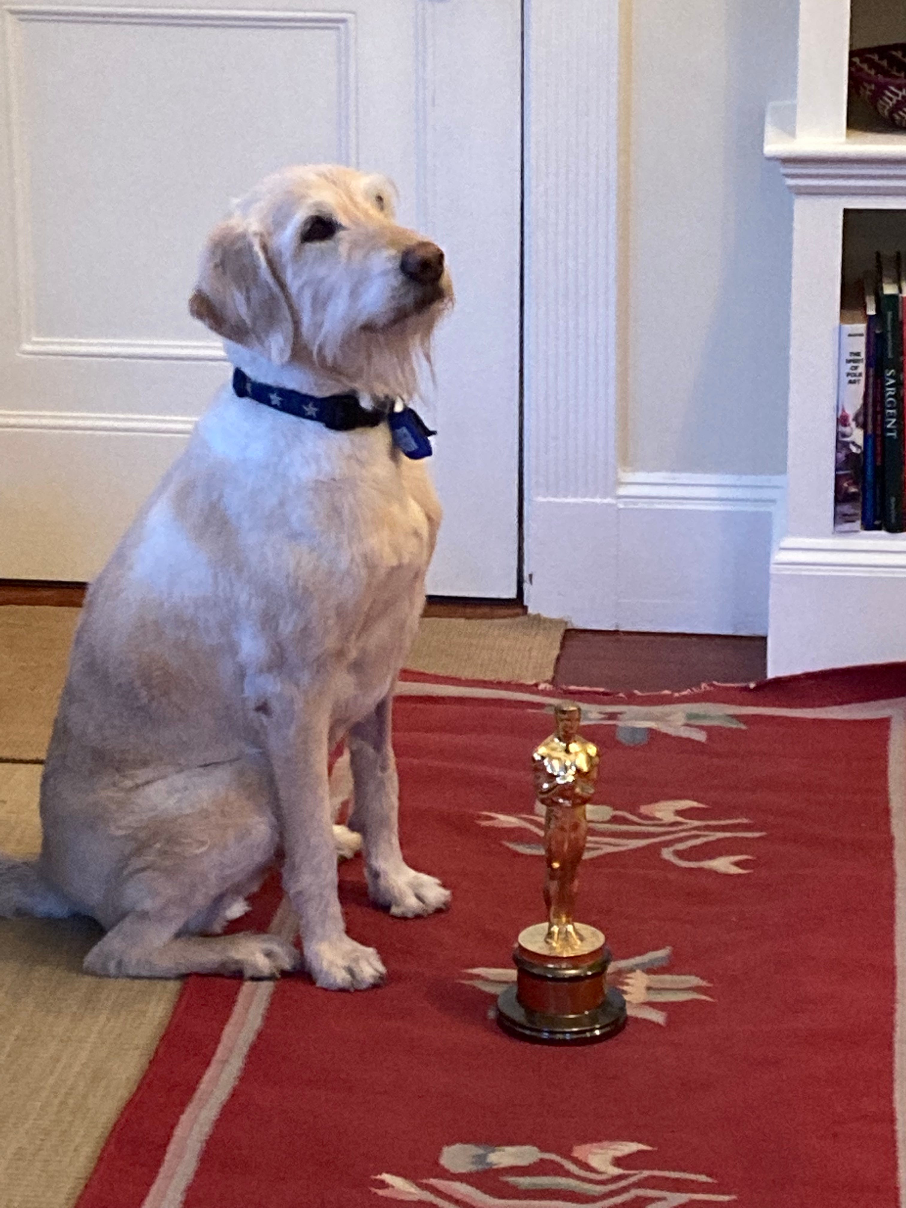 P.S. One of our guests brought a friend: Irwin Allen’s 1952 Best Documentary Feature Oscar for “The Sea Around Us,” on loan from Allen’s nephew. We all took turns posing with it for photos. Bodhi included.