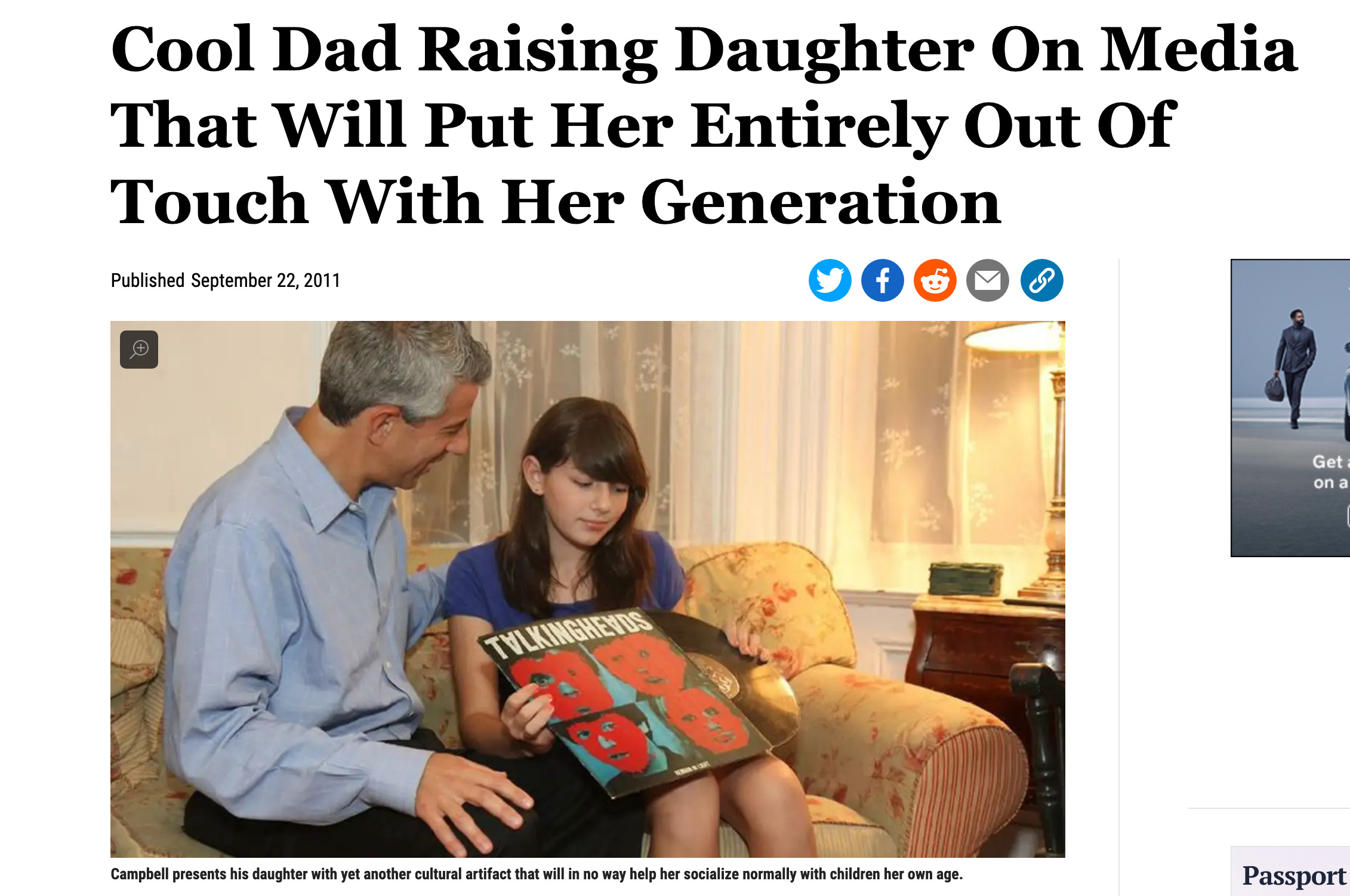 Playlists have always been the province of sentimentalists and stalkers, dance party alpha-males, completists, historians, OCD list-makers. And strainingly hip dads, of course, which has been my own shameless sub-species in the genus. I am a man who once sent his younger child to school with a home-curated “History of Post-Punk” CD to play in their music class; I am also the dad who made a Philadelphia Soul playlist so that my children could properly understand the cultural transition from Motown to Disco. Worse – so much worse – I have burned playlist CDs for various nieces and nephews and even my kids’ friends if they made the mistake of expressing the vaguest interest in what was playing on our stereo during a playdate. I am pleased to report that, so far as I know, those playlists went unheard and never remarked upon — the only proper response when a random adult tries to dump his generation’s arcana on you. Have you ever seen that Onion article about the Cool Dad who destroys his daughter’s generational taste? That was written about me.