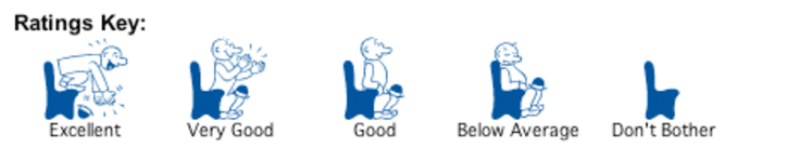 My favorite ratings dingbat has always been the San Francisco Chronicle’s “Little Man” (above), created by staff cartoonist Warren Goodrich in 1942 and still in use today, despite recent castigation of it – him – as a “white supremacist icon,” among other things. The Little Man scale has only five gradations, from full-on out-of-seat aesthetic/orgasmic bliss to an empty theater seat (the Little Man got bored and went home). I like the Little Man, but I doubt he’d work in Boston. He’d probably just sit there, dour as a parson, no matter how he felt about the movie, or maybe he’d throw Dunkins at the screen. Now that I’m on my own, however, I’m willing to reconsider. What about the Five Stages of Bodhi?