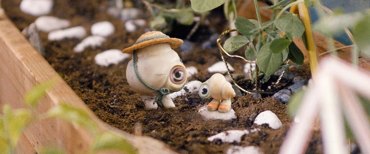 And it gives us an unexpected comedy team in Jenny Slate and Isabella Rossellini, both giving voice to wee shell-creatures (above) that live in in the crevices and corners of an AirBnB rented out by Dean Fleischer-Camp, who directed “Marcel the Shell with Shoes On” and in the film’s little meta-world is making a documentary about these creatures he found residing there. Marcel once had an entire extended family of sentient bivalves, but they’ve been dispersed to the winds and the tides; only Grandma Connie (Rossellini) is left, and she hasn’t been the same since she fell and cracked her shell. The movie addresses themes of loneliness and belonging, the families we lose and the families we make, with a deft pastel wonder that somehow avoids cloying over the long haul. It’s also sweetly funny, in large part because of Slate’s nuanced vocal performance. Marcel was born in the aftermath of the comedian getting axed from “Saturday Night Live,” when she tried to dispel the doldrums by coming up with a teeny-weeny voice to make then-boyfriend Fleischer-Camp laugh. The voice became embodied in a shell, the shell became the star of a short film, then two more, and now, after 12 years of promises, we have a feature. (In the interim, Slate and Fleischer-Camp were married and divorced. Thankfully, they’ve remained on good terms and have continued to share joint custody of Marcel.)