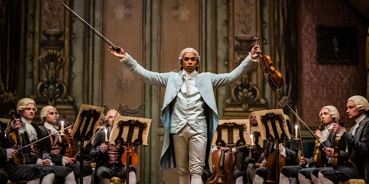 “Chevalier” (in theaters this fall, *1/2 stars out of ****) – Or: How to take a grand subject – the life and times of 18th-century Creole violinist-conductor-composer Joseph Bologne – and dumb it down into a strident, shallow melodrama pitched at the rear balcony. A surprising dud given the talent involved: star Kelvin Harrison Jr. (“Luce”), director Stephen Williams (“TV’s “Watchmen”), screenwriter Stefani Robinson (TV’s “Atlanta,” “What We Do in the Shadows”). Maybe the leap to the two-hour film format threw them, but this is a lot more simplistic than anything they’ve made for the small screen.