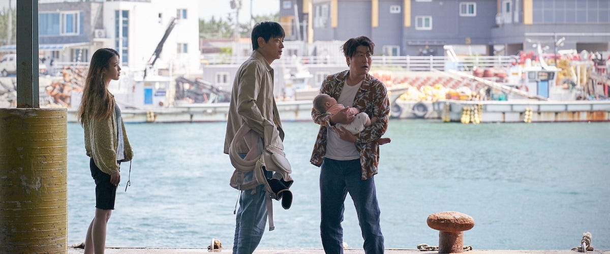“Broker” (⭐ ⭐ ⭐ 1/2) is expanding to local arthouse theaters this weekend; it’s the latest from the prolific Japanese writer director Hirokazu Kore-eda, whose wonderful 2018 drama “Shoplifters” won the Palme d’Or at Cannes and was nominated for a Foreign Language Oscar. Kore-eda almost obsessively makes movies about troubled characters who find solace in improvised families, and “Broker” is more of the same – if you liked “Shoplifters,” you’ll like the new film, which at times almost plays like a remake. (Kore-eda has described it as a “companion piece.”) Filmed in South Korea, it stars Song Kang-ho (above right) – the con-artist dad in Bong Joon-ho’s devilish “Parasite” – as a laundry owner with a side hustle in selling abandoned babies on the black market. He and his hapless partner (Gang Dong-wan, above center) are tailed by two lady police investigators (by-the-book Bae Doona and laissez-faire Lee Joo-young) and confronted by a young mother (Lee Ji-eun, above left) desperate to get her baby back. What in other hands might be a suspense thriller or a melodrama becomes a Kore-eda special: a road movie, a melancholy comedy, and a moving testament to the human need to gather in together. It’s the same recipe as “Shoplifters,” with the same ingredients, but it tastes just as good the second time around.