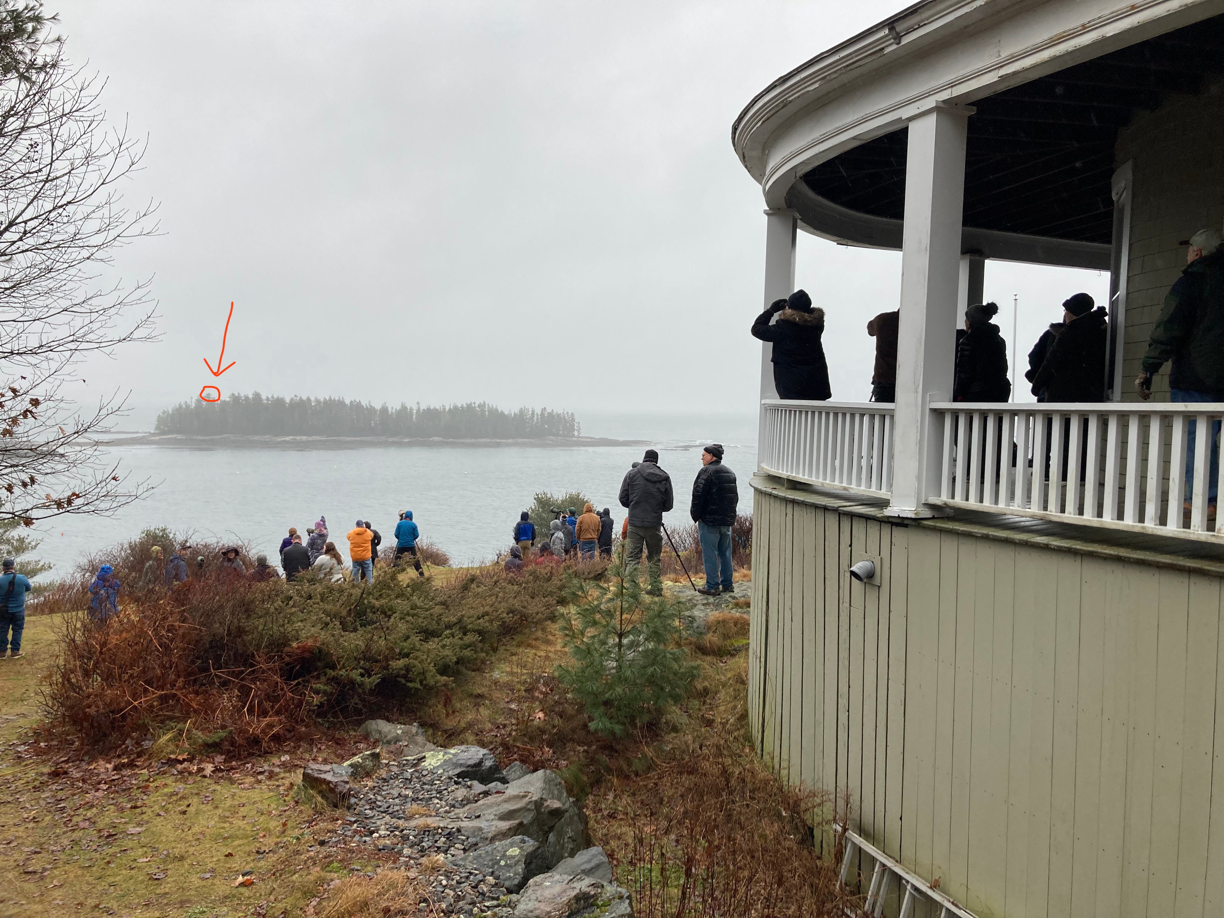 After Christmas, though, our family went to Blue Hill, Maine, for a week’s getaway, and on the last day of 2021, reports came in that the lonely wanderer had been seen two hours down the coast, on Georgetown Island, south of Bath. If I were what the British call a “twitcher,” I would have immediately dropped everything and gone, but being only a part-time twitcher, I held off until the drive home two days later, following the latest online reports to guide us in.